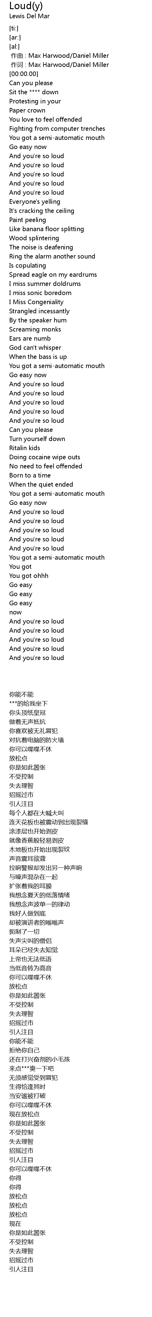 | [04:01.29] | And you' re so loud |