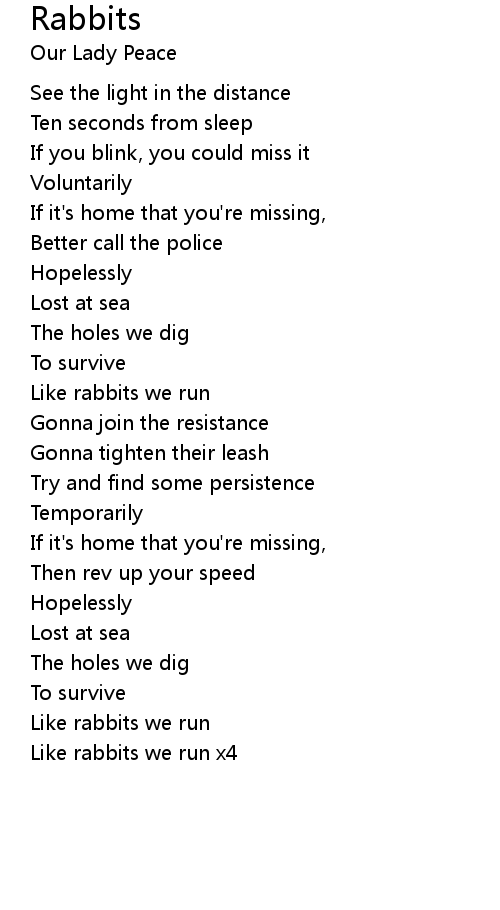| Like rabbits we run | |