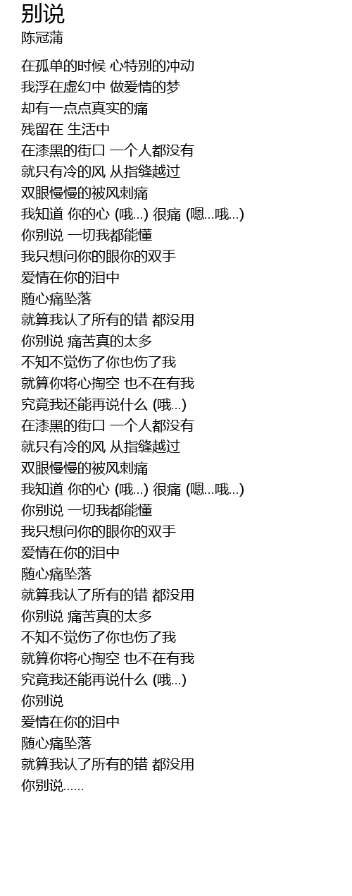| [01:50.310] | nǐ bié shuō tòng kǔ zhēn de tài duō |