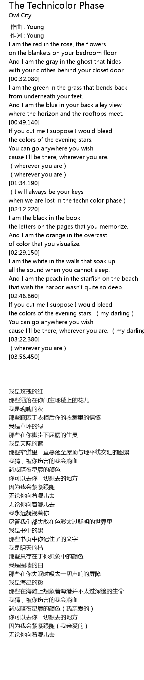 | [03:09.000] | 淌成暗夜星辰的颜色(我亲爱的) |