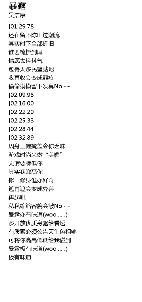 | [01:25.11][02:32.89] | bào lù yì yǒu wèi dào |