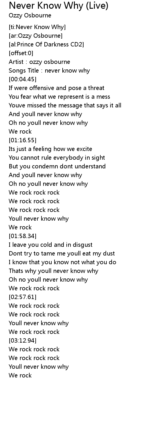 | ti: Never Know Why | |