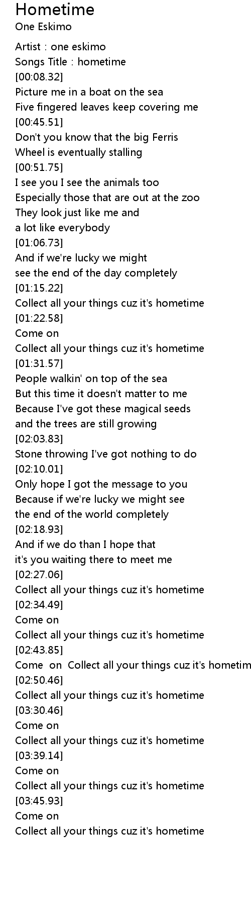 | [02:45.72] | Come on Collect all your things cuz it's hometime |
