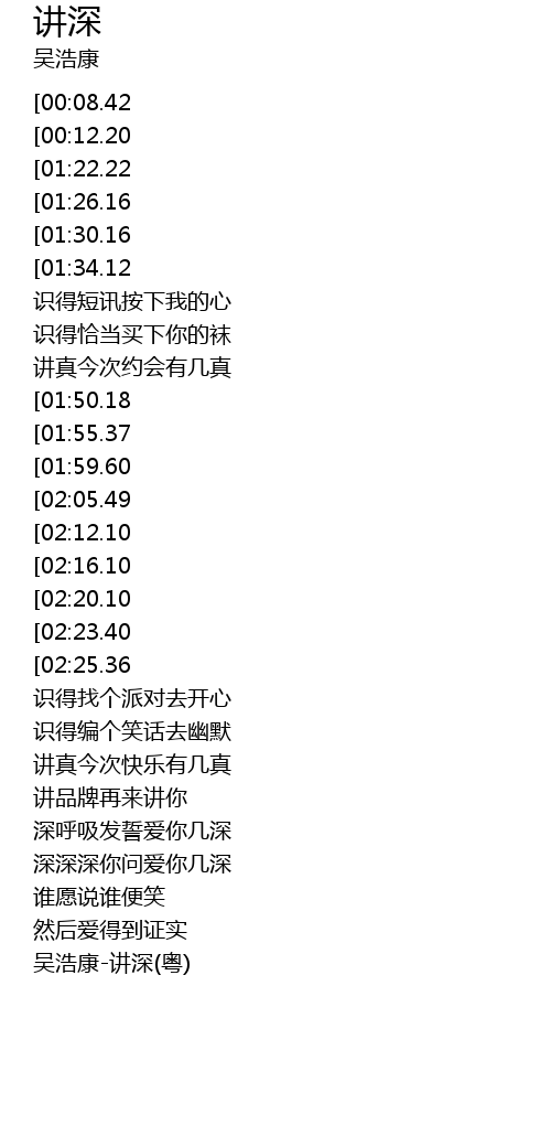 | [03:48.91] | 吴浩康-讲深(粤) |