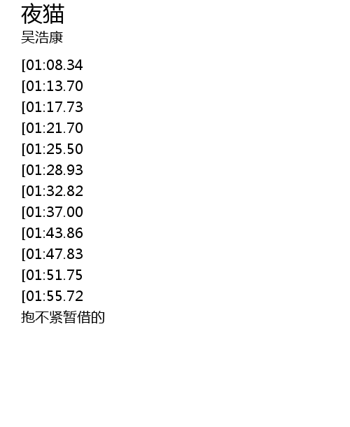 | [00:13.00][01:08.34][02:01.86][03:06.26] | 吴浩康-夜猫(粤) |