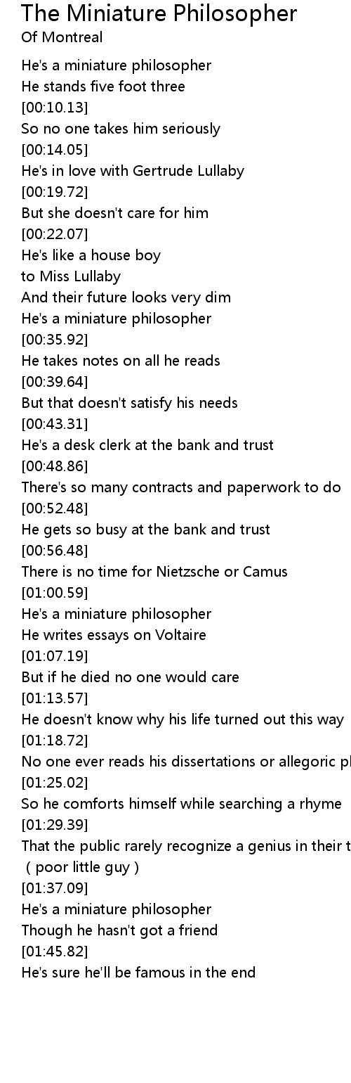 | [01:02.03] | He's a miniature philosopher |