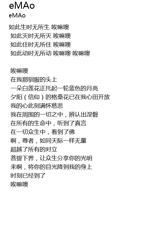 | rú cǐ zhù shí wú suǒ zhù āi ma ō | |