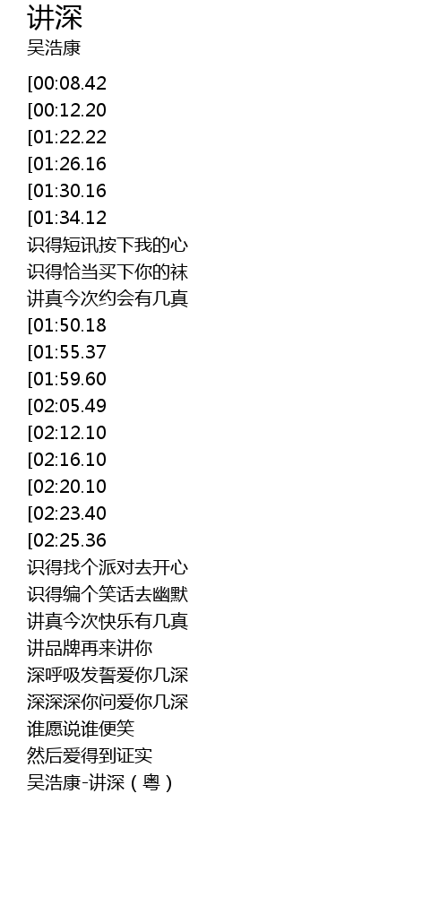 | [03:48.91] | 吴浩康-讲深(粤) |