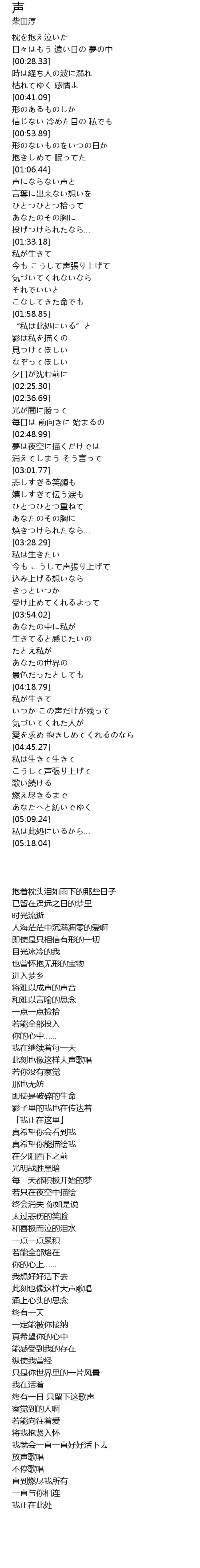 | [03:34.16] | 今も こうして声張り上げて |