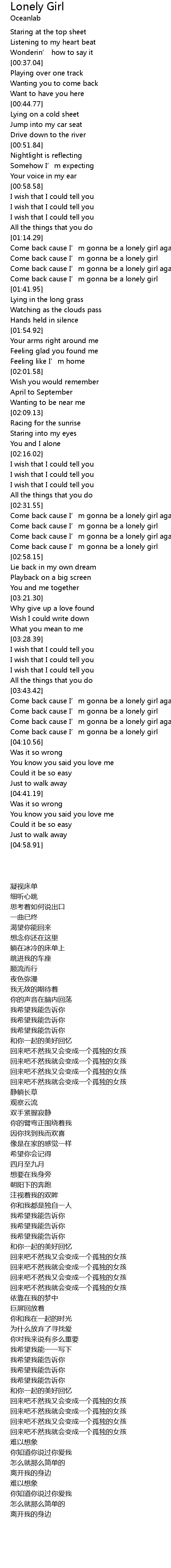 | [01:15.20] | Come back cause I’m gonna be a lonely girl again |