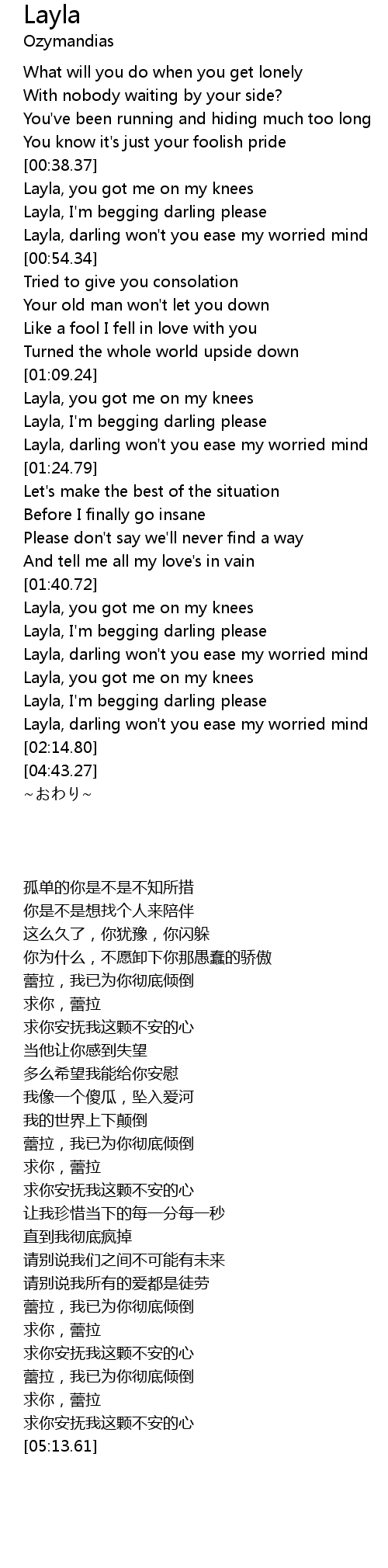 | [01:18.56] | Layla, darling won't you ease my worried mind |