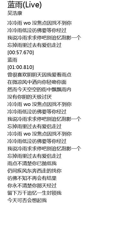 | [01:35.960] | 冷冷雨 wo 没焦点因找不到你 |