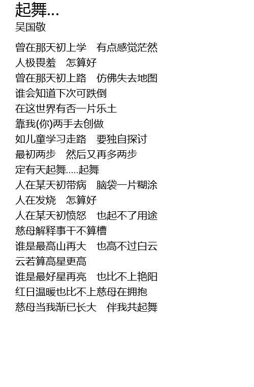 | cí mǔ dāng wǒ jiàn yǐ zhǎng dà bàn wǒ gòng qǐ wǔ |