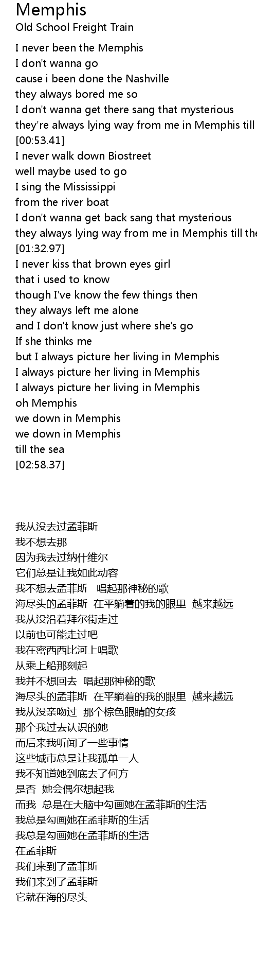 they're always lying way from me in Memphis till the sea |