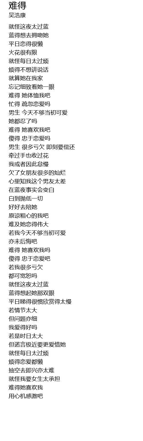 | 歌曲 | 难得 |
