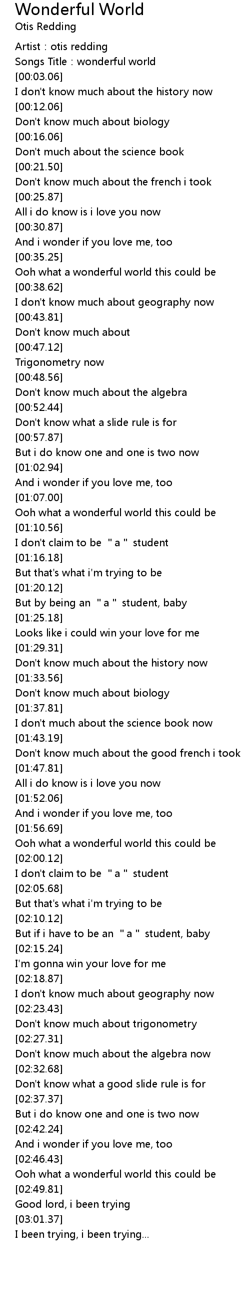 | [00:02.15] | Songs Title: wonderful world |