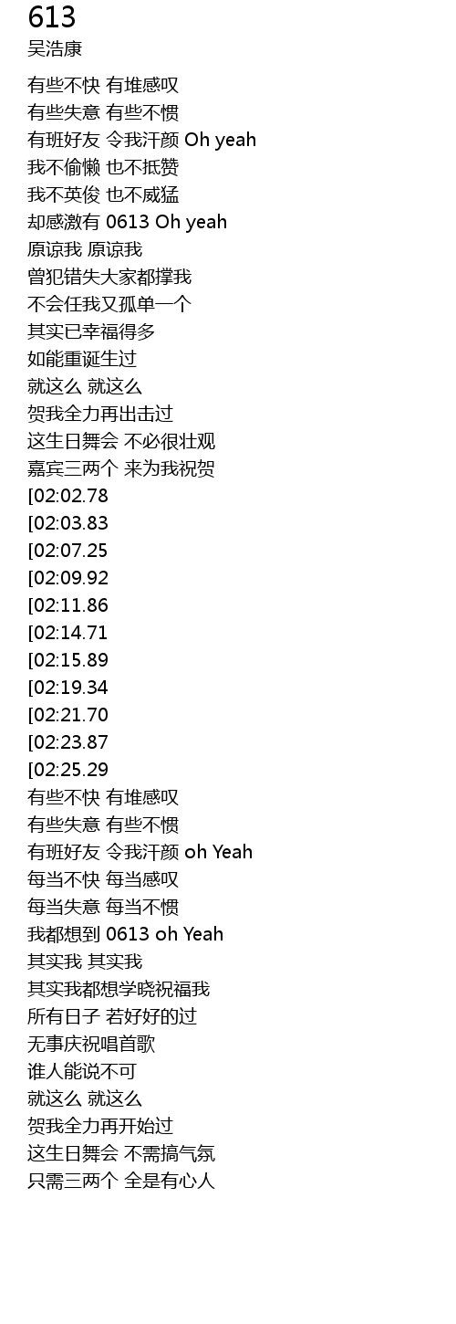 | [01:29.77] | 我都想到 0613 oh Yeah |