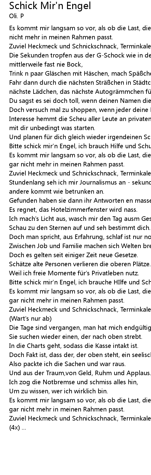 | Bitte schick mir'n Engel, ich brauch Hilfe und Schutz. | |