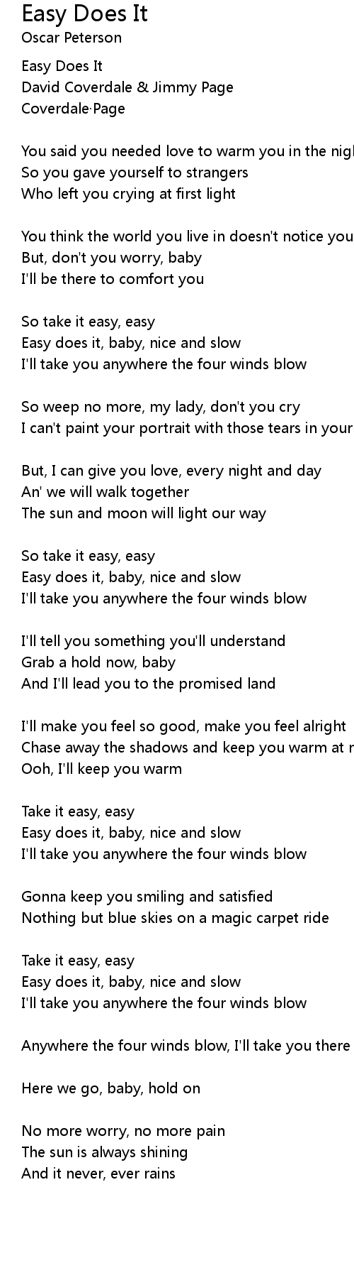 | So take it easy, easy | |