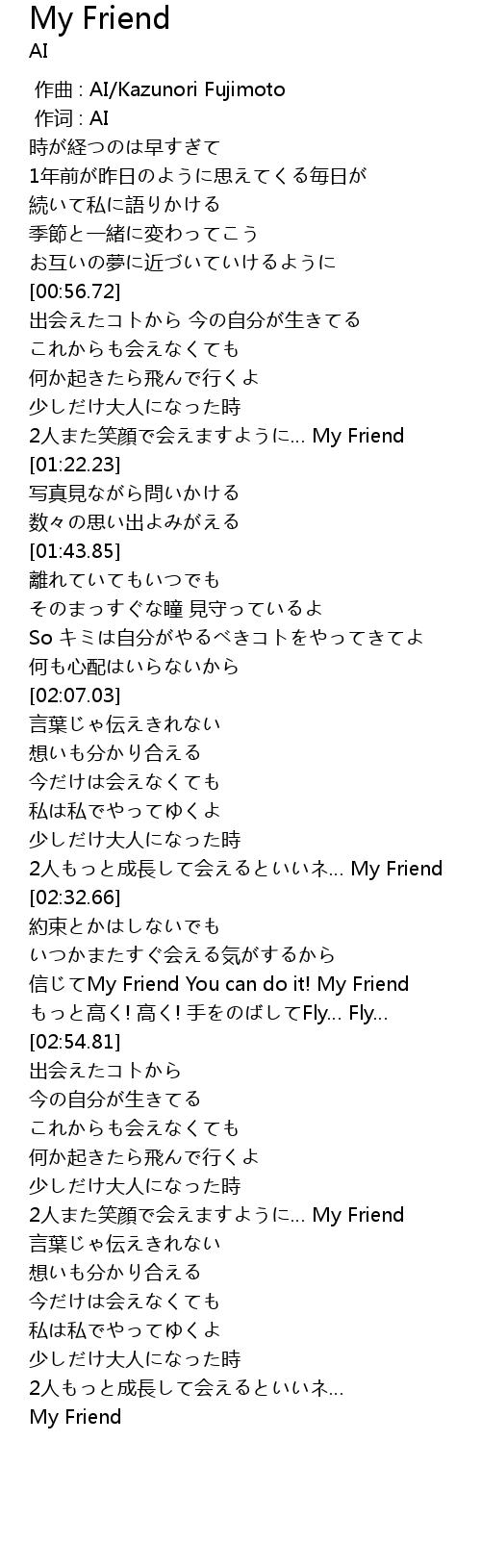 | [03:11.92] | 2人また笑顔で会えますように… My Friend |