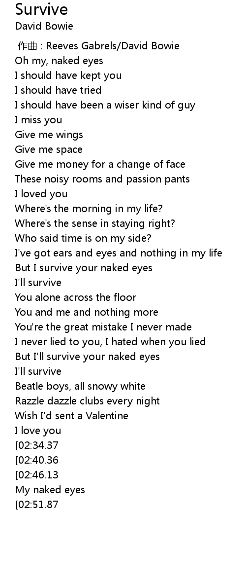 | [02:58.17][02:34.37] | I' ll survive Naked eyes |