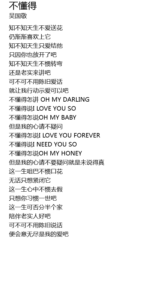 | 歌曲 | 不懂得 |