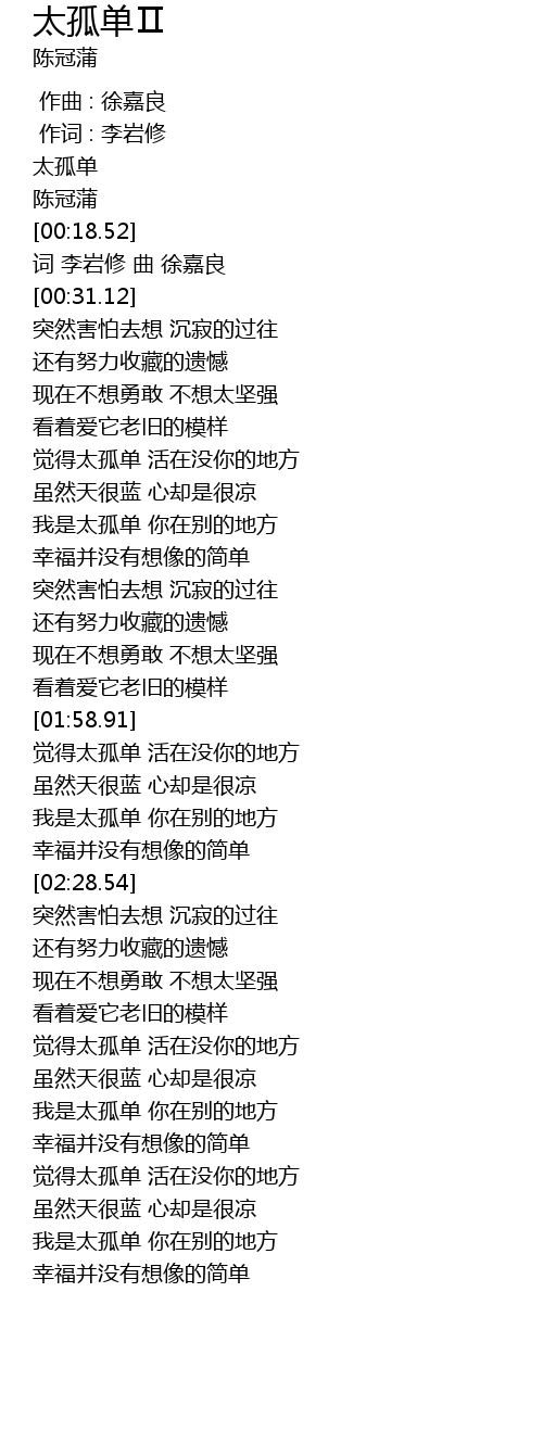 | [00:02.47] | 太孤单 |