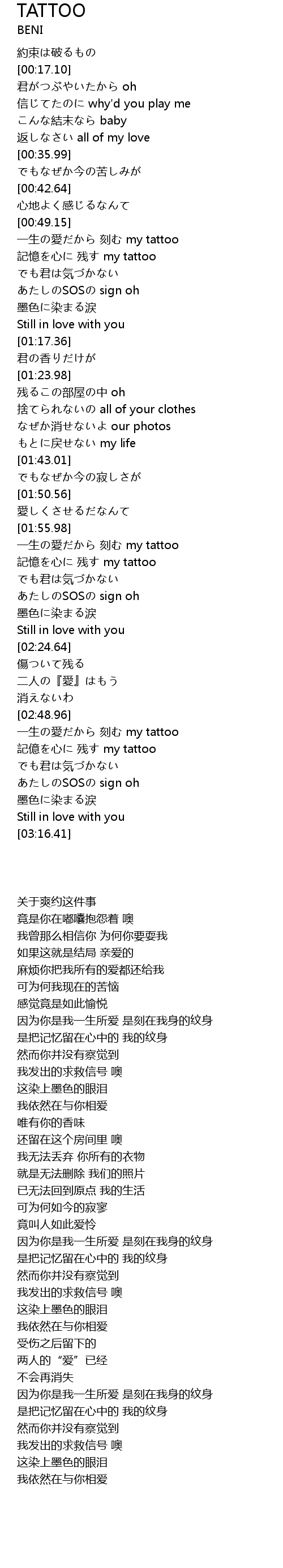 | [02:56.54] | 記億を心に 残す my tattoo |