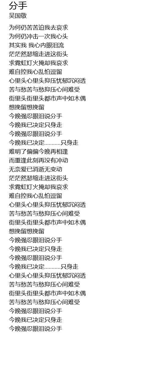| [01:33.22] | 今晚强忍眼泪说分手 |