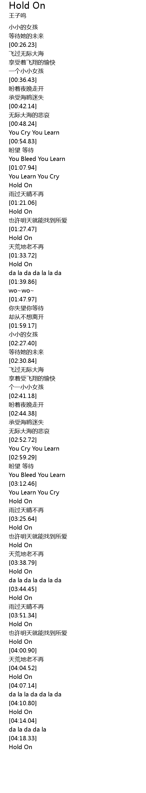 | [03:20.21] | Hold On |
