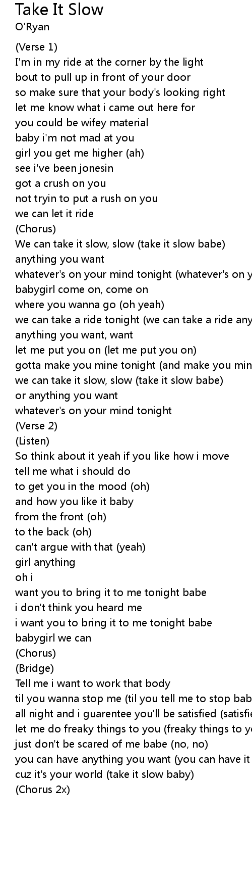 | we can take it slow, slow (take it slow babe) | |