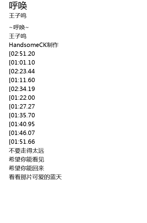 | [02:53.22][01:35.70] | 用爱呼唤你回来 |