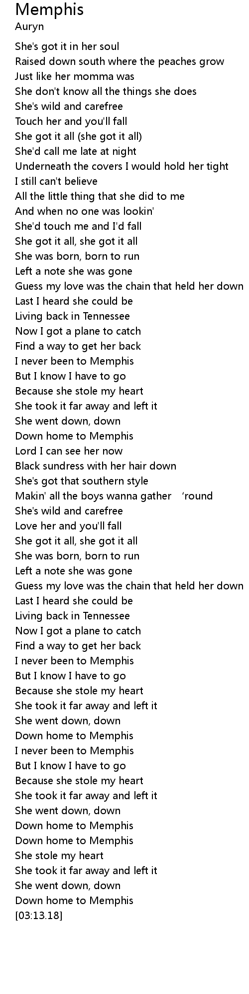 | [02:14.84] | Down home to Memphis |