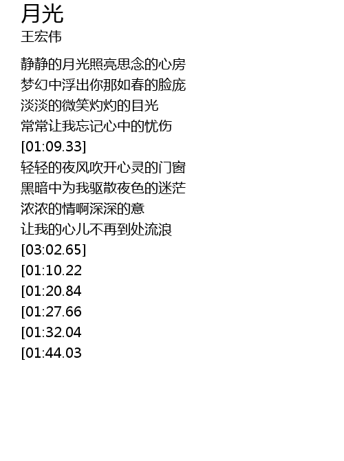 | [03:21.04][01:27.66] | 月光给了多少个温馨 |