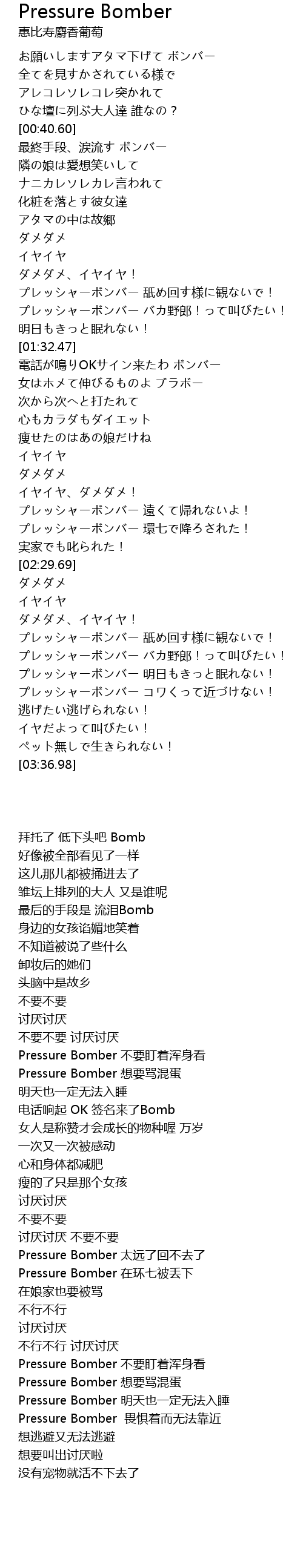 | [03:04.83] | Pressure Bomber 想要骂混蛋 |