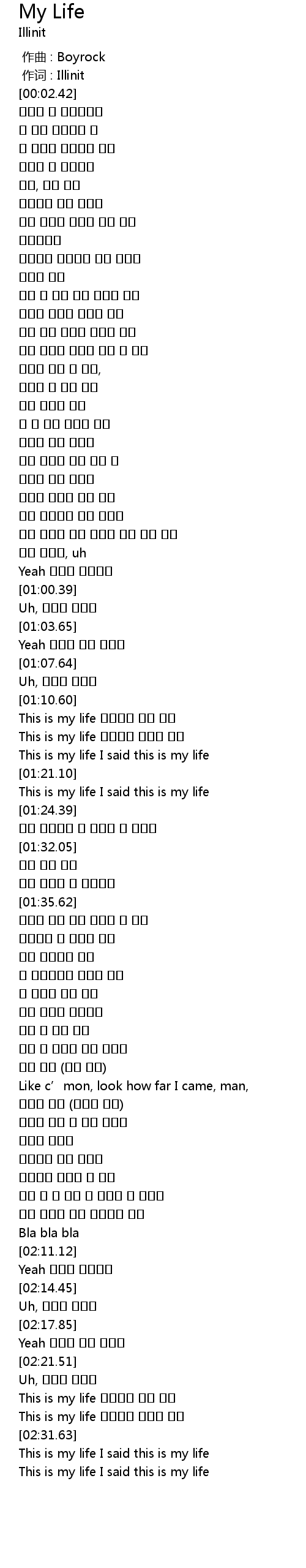 | [02:28.58] | This is my life 의미없어 남과의 비교 |