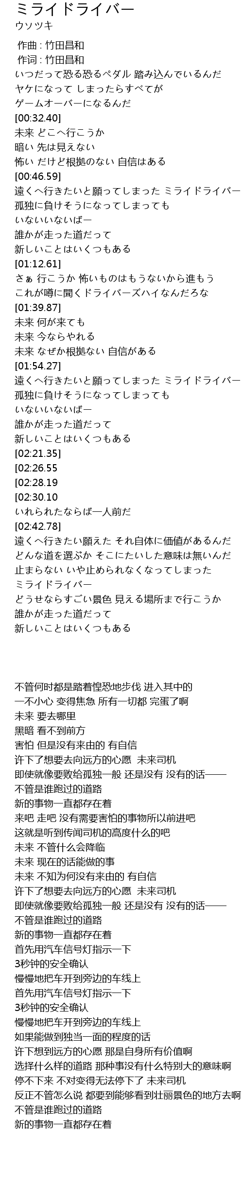 | [02:58.39] | 停不下来 不对变得无法停下了 未来司机 |