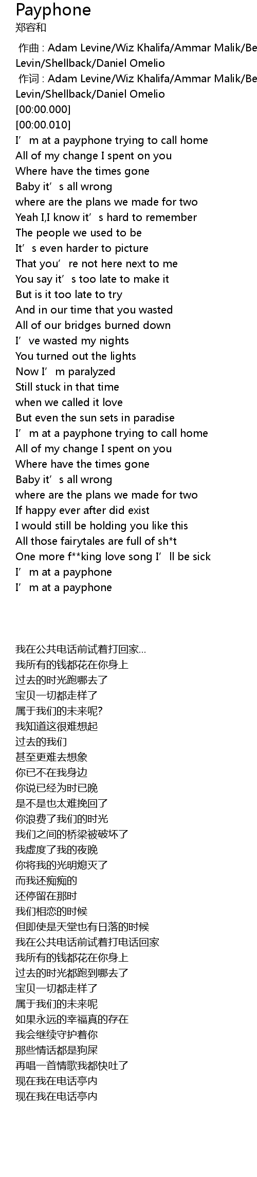 | [00:00.00] | zuo ci : Adam Levine Wiz Khalifa Ammar Malik Benjamin Levin Shellback Daniel Omelio |