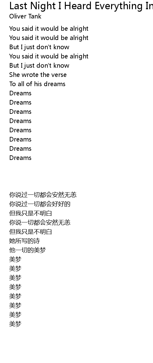 | 歌曲 | Last Night I Heard Everything In Slow Motion |