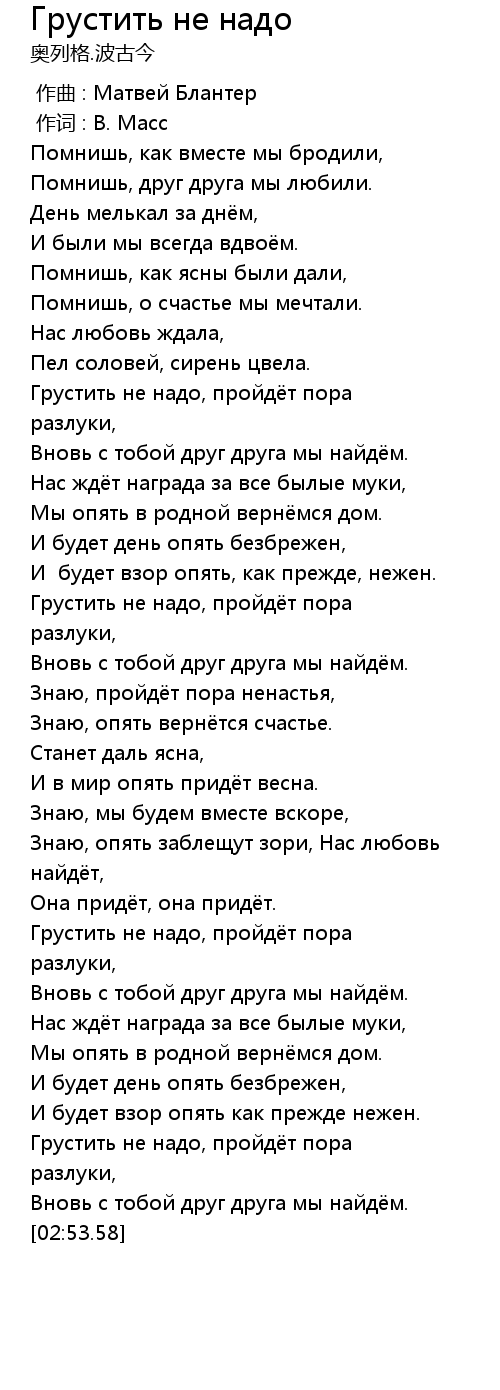 Грустить не надо 歌词