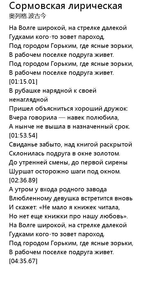 Сормовская лирическая 歌词
