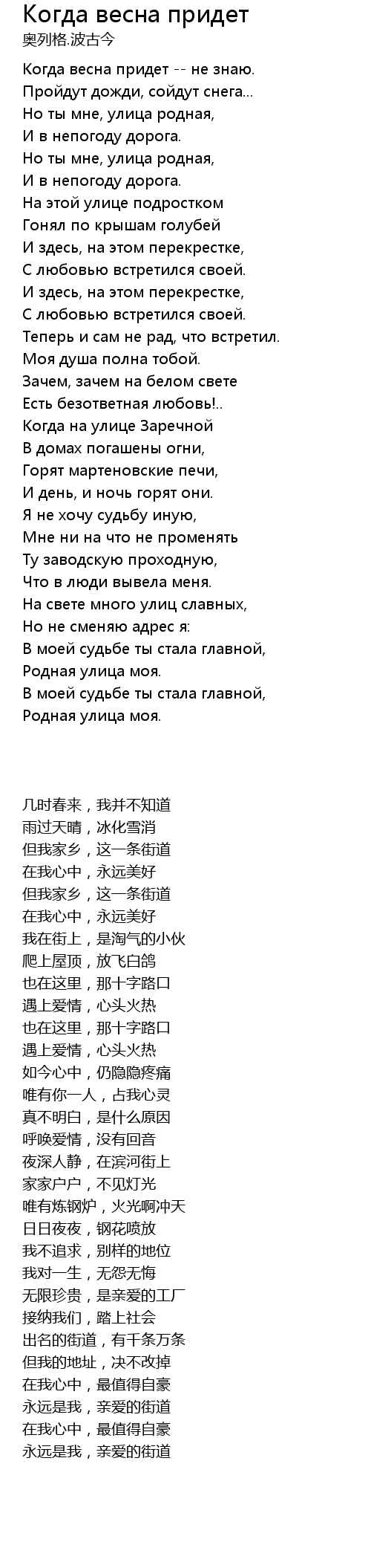 | 歌曲 | Когда весна придет |