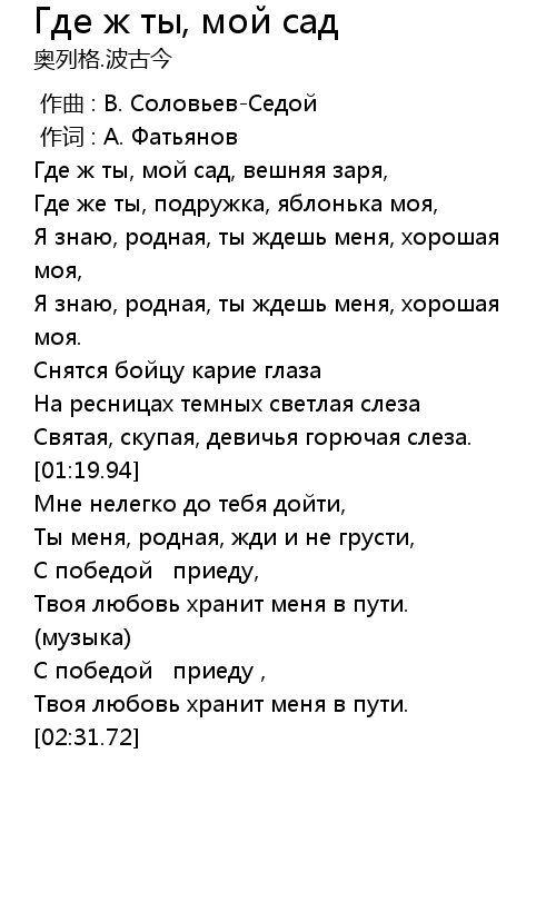 作词 : А. Фатьянов |