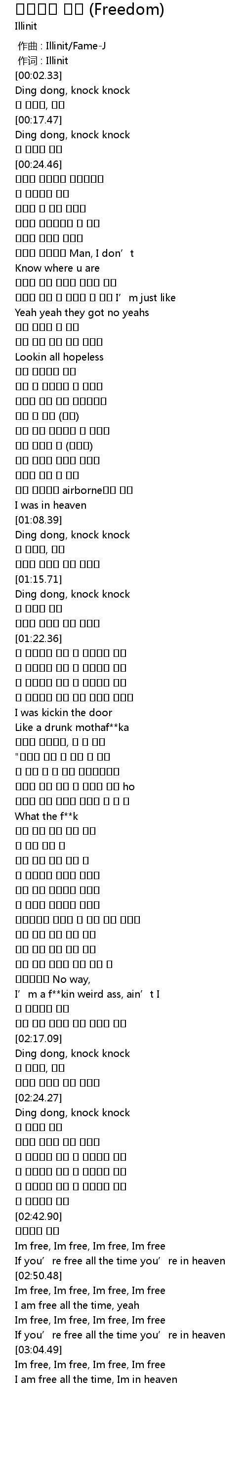 | [02:34.47] | 난 자유로운 존재 어 자유로운 존재 |