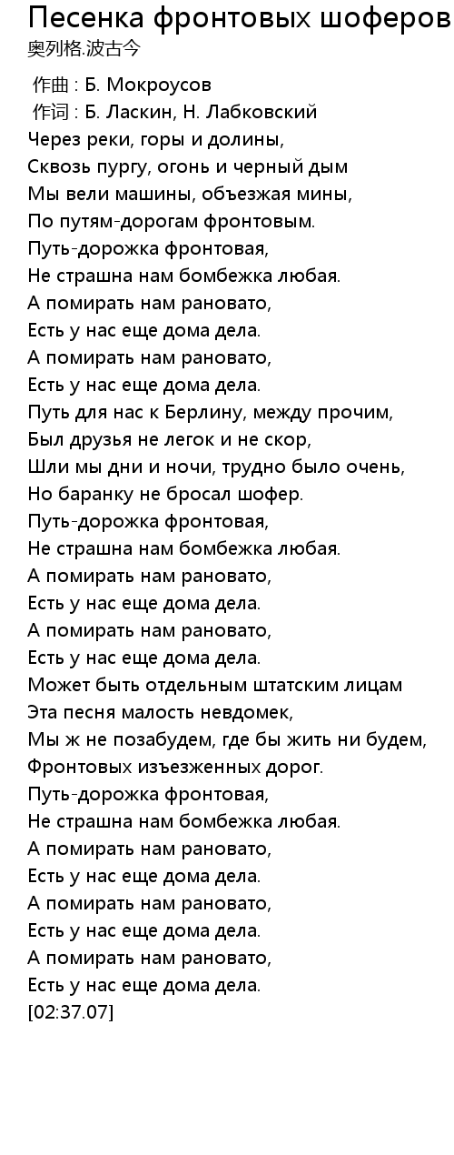 [00:01.000] 作词 : Б. Ласкин, Н. Лабковский