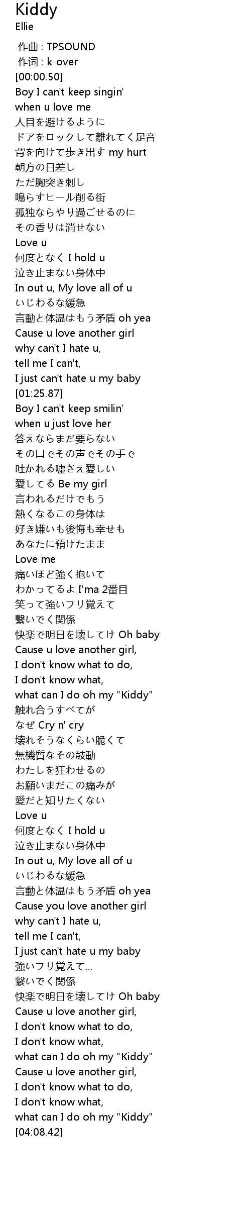 | [04:06.15] | what can I do oh my " Kiddy" |