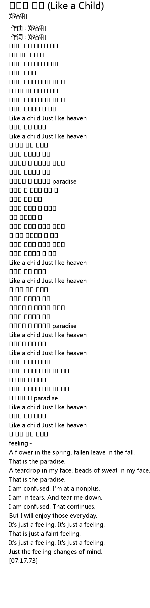 | 歌曲 | 아이의 노래 (Like a Child) |