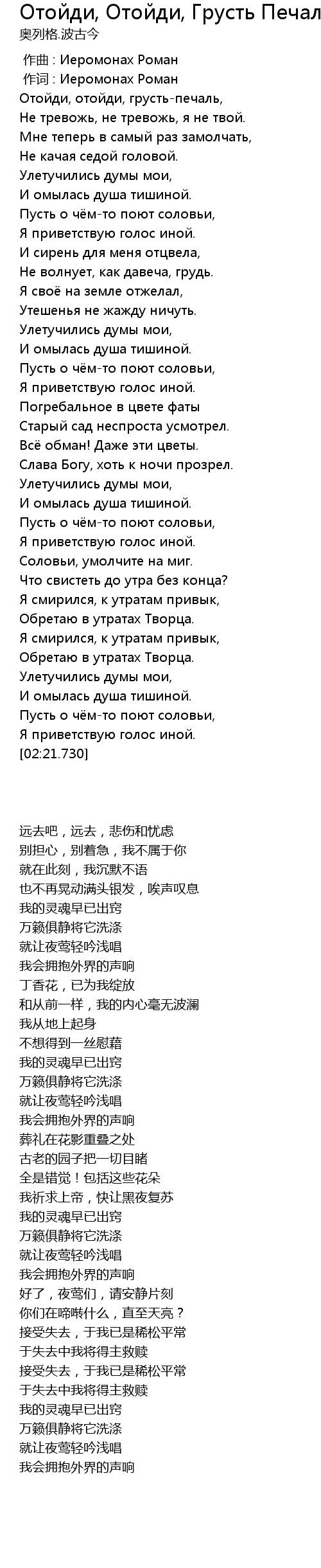 | 歌曲 | Отойди, Отойди, Грусть Печаль… |