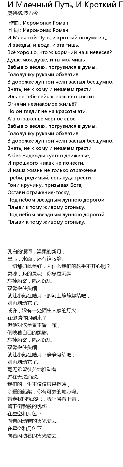 | 歌曲 | И Млечный Путь, И Кроткий Полумесяц |