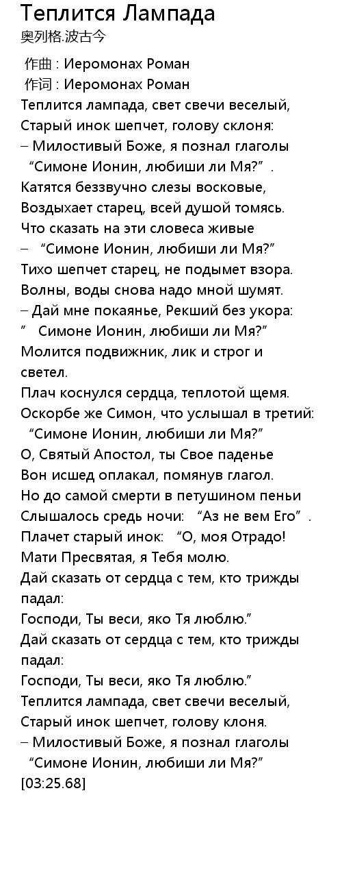 作词 : Иеромонах Роман |